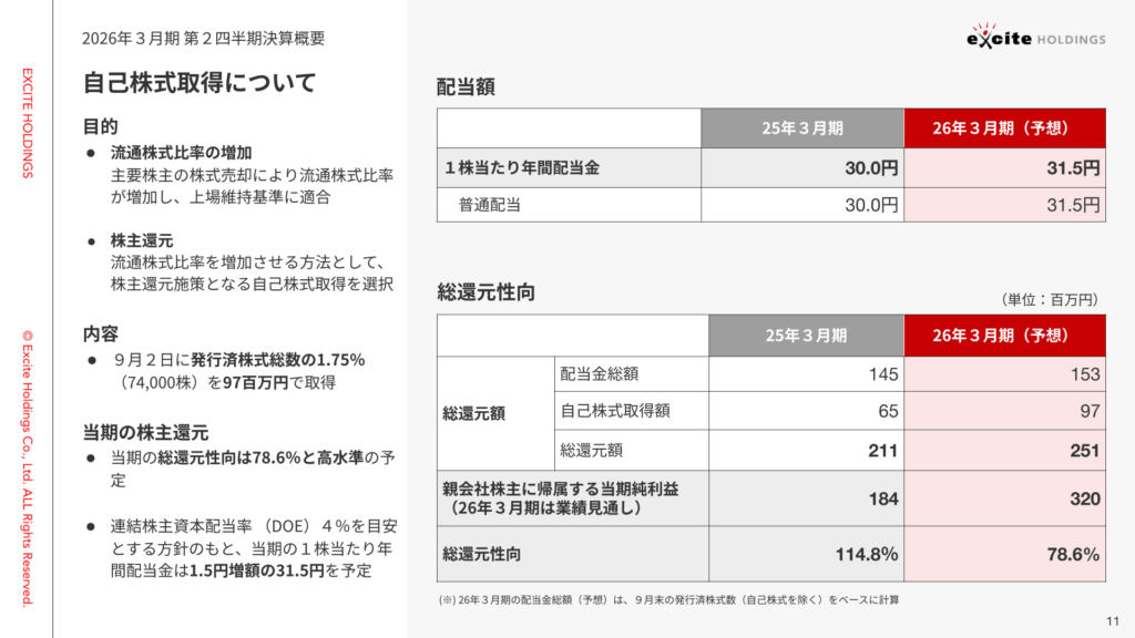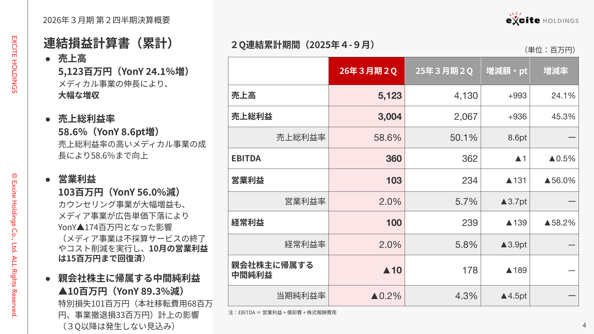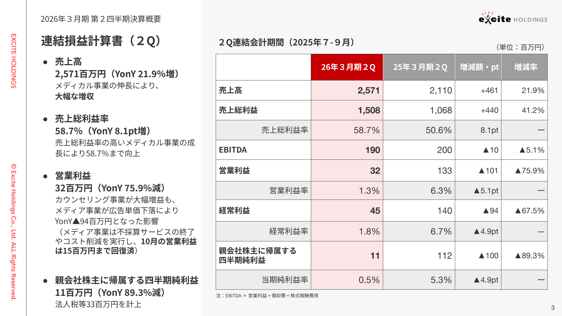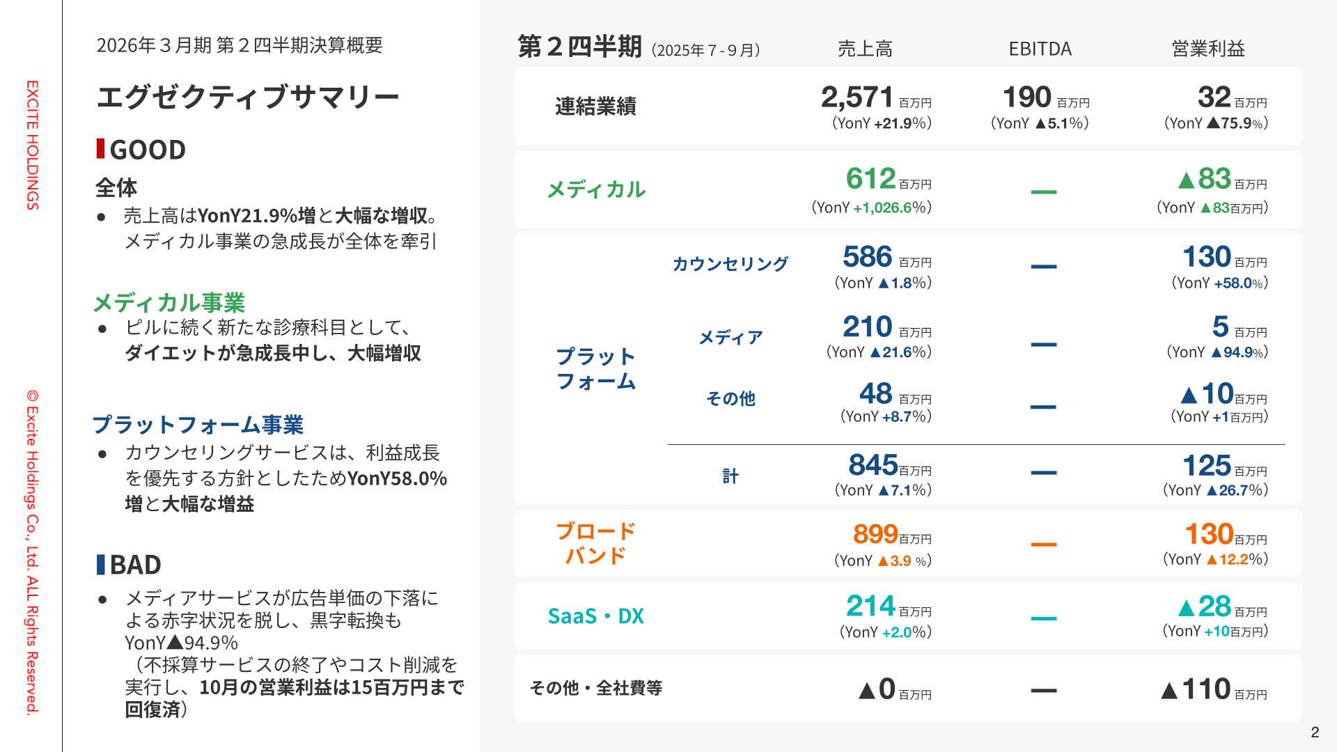 ただいまよりエキサイトホールディングス株式会社2026年3月期第2四半期の決算についてご説明させていただきます。