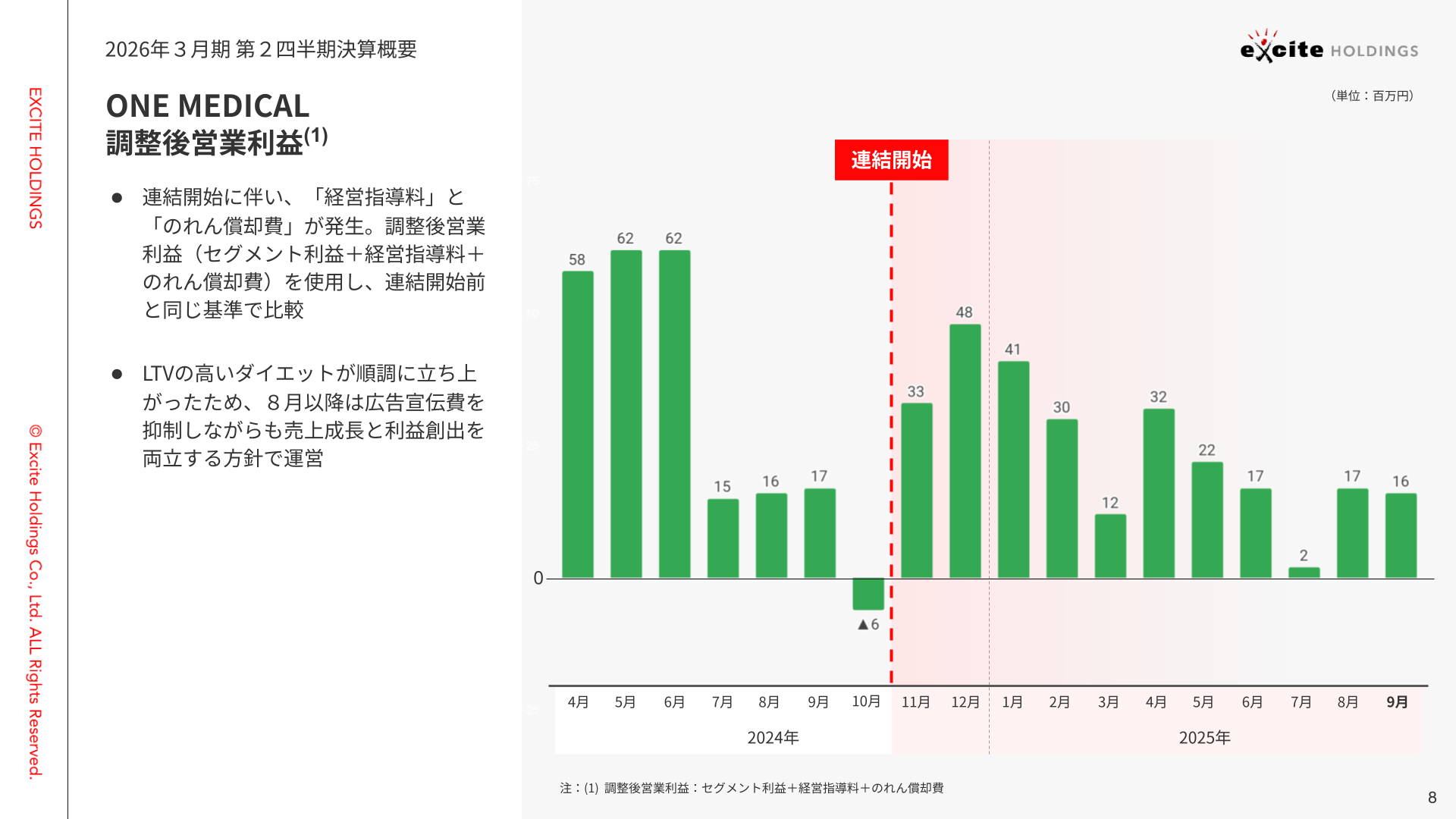 メディカル事業については8月から広告費を抑制しながらも売上成長と利益創出を両立する方針で運営しています。