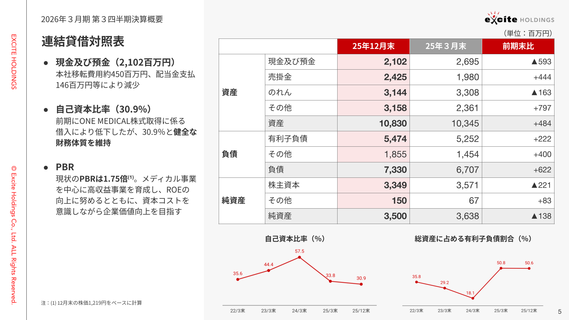 PBRは、2025年12月末時点の株価を基準に1.75倍となっております。当社としては、この水準を当然視することなく、資本コストを強く意識し、ROE向上と持続的な成長を通じた企業価値の最大化に取り組んでまいります。