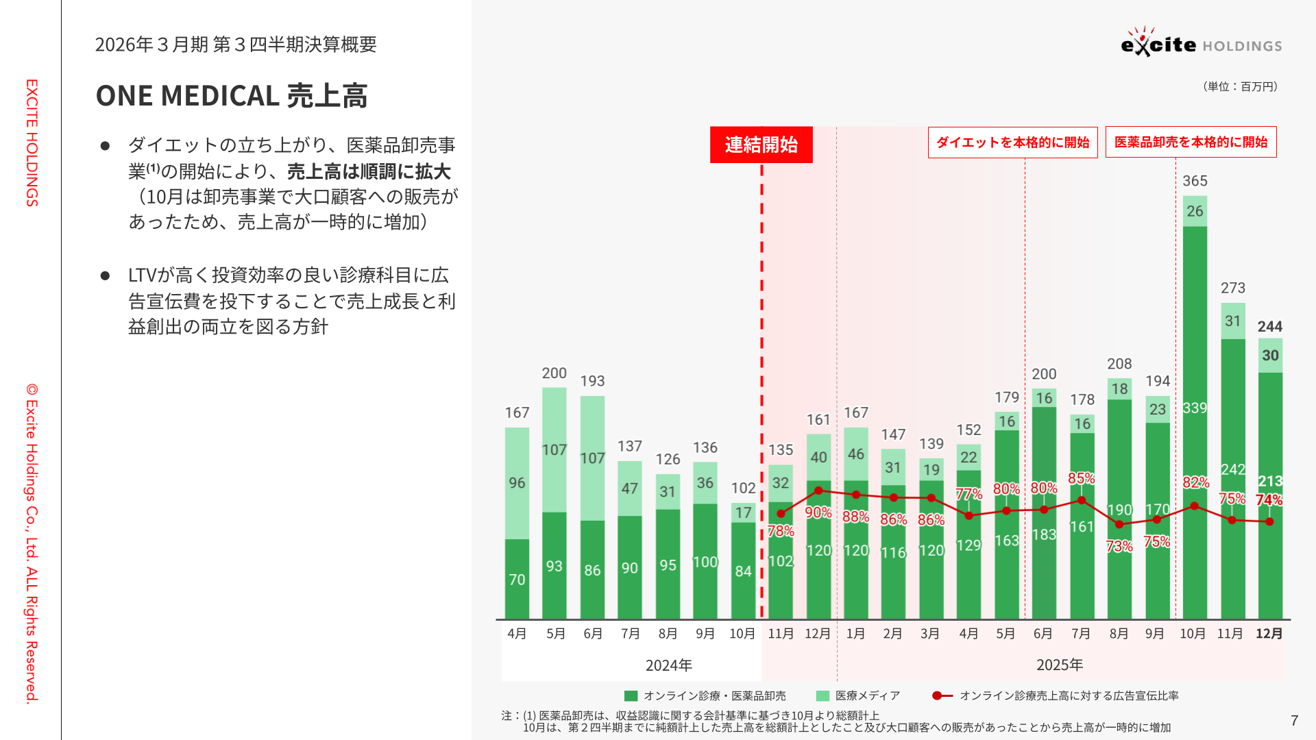 ONE MEDICALの売上高も順調に拡大。LTVが高く投資効率の良い診療科目に広告宣伝費を投下することで、売上高成長と利益創出の両立を図る