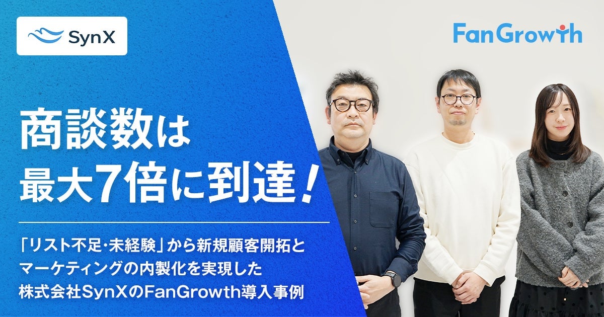 エキサイト株式会社(所在地:東京都港区、代表取締役社長:西條 晋一)が提供する、誰でも売上につながるウェビナーを再現性高く実施できる「FanGrowth(ファングロース)」は、株式会社SynX(所在地:東京都千代田区、代表取締役CEO:西 潤一郎)に導入いただき、このたび活用事例を公開しました。