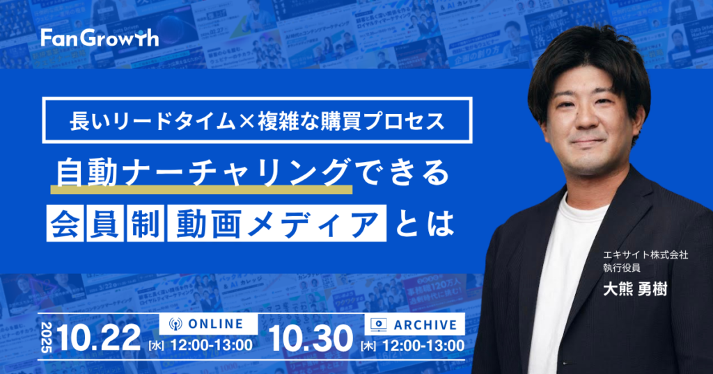 FanGrowthは、これまでプロダクトとBPOサービスを提供し、共催ウェビナーやカンファレンスの開催を通じて、BtoBマーケティングにおけるリード獲得や短期的な商談創出といった課題を解決してまいりました。一方で、BtoBマーケティングには「検討期間が長い」という特有の課題が存在します。すぐに商談化しない見込み顧客に対しては、有効なアプローチ手段が少ないだけでなく、多くのマーケティング担当者が目前のKPI達成に追われ、中長期的な顧客育成に工数を割けないという二重の課題が存在していました。